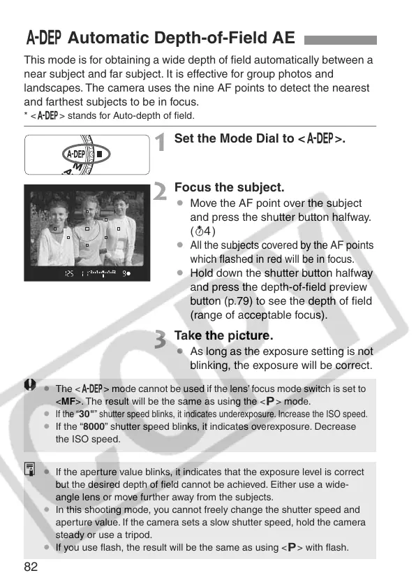 button (p.79) to see the depth of field