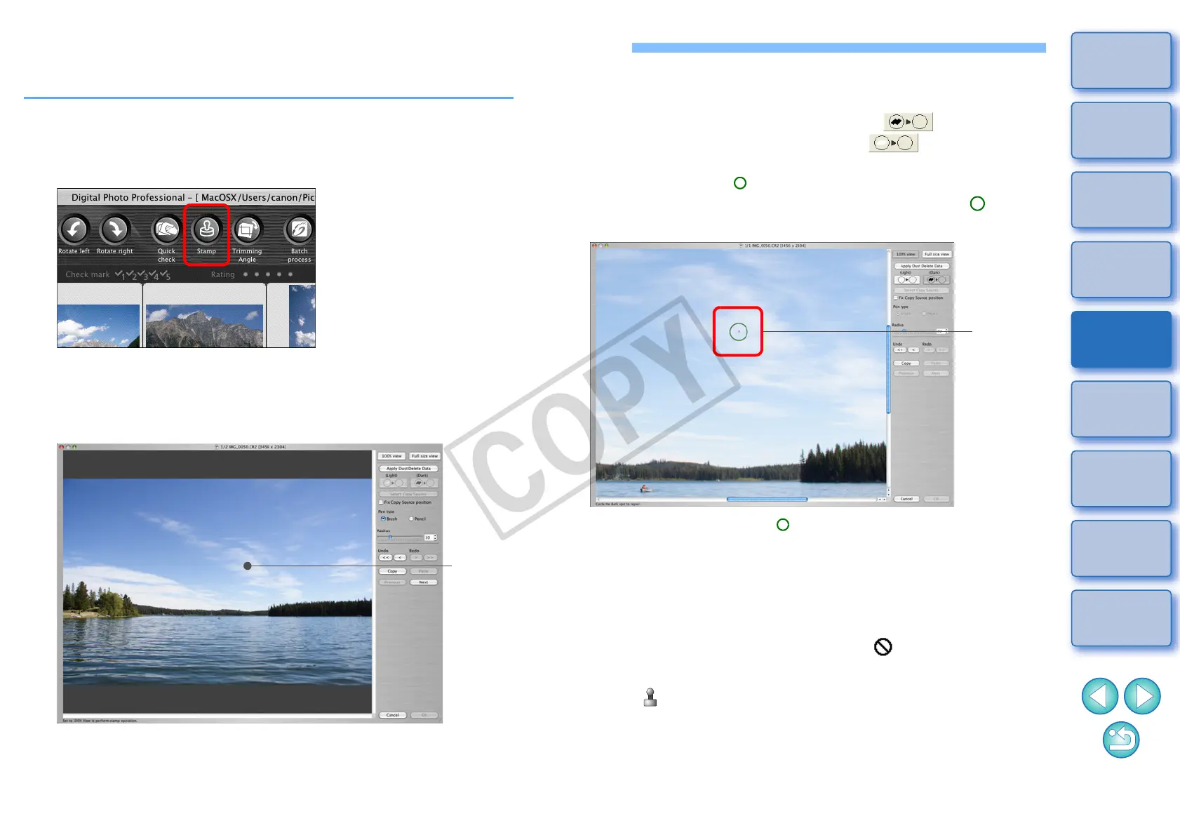 O To erase dust in another part of the image, click the button