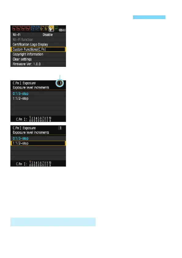Under [53: Clear settings], select [Clear all Custom Func. (C.Fn)] to