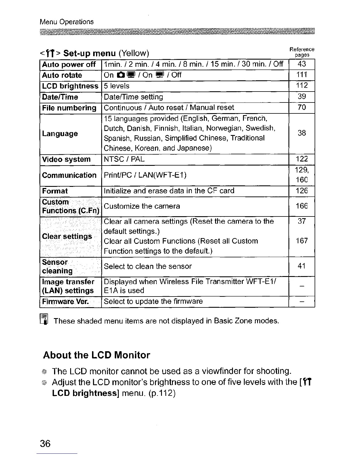 LCD brightness] menu. (p.112)