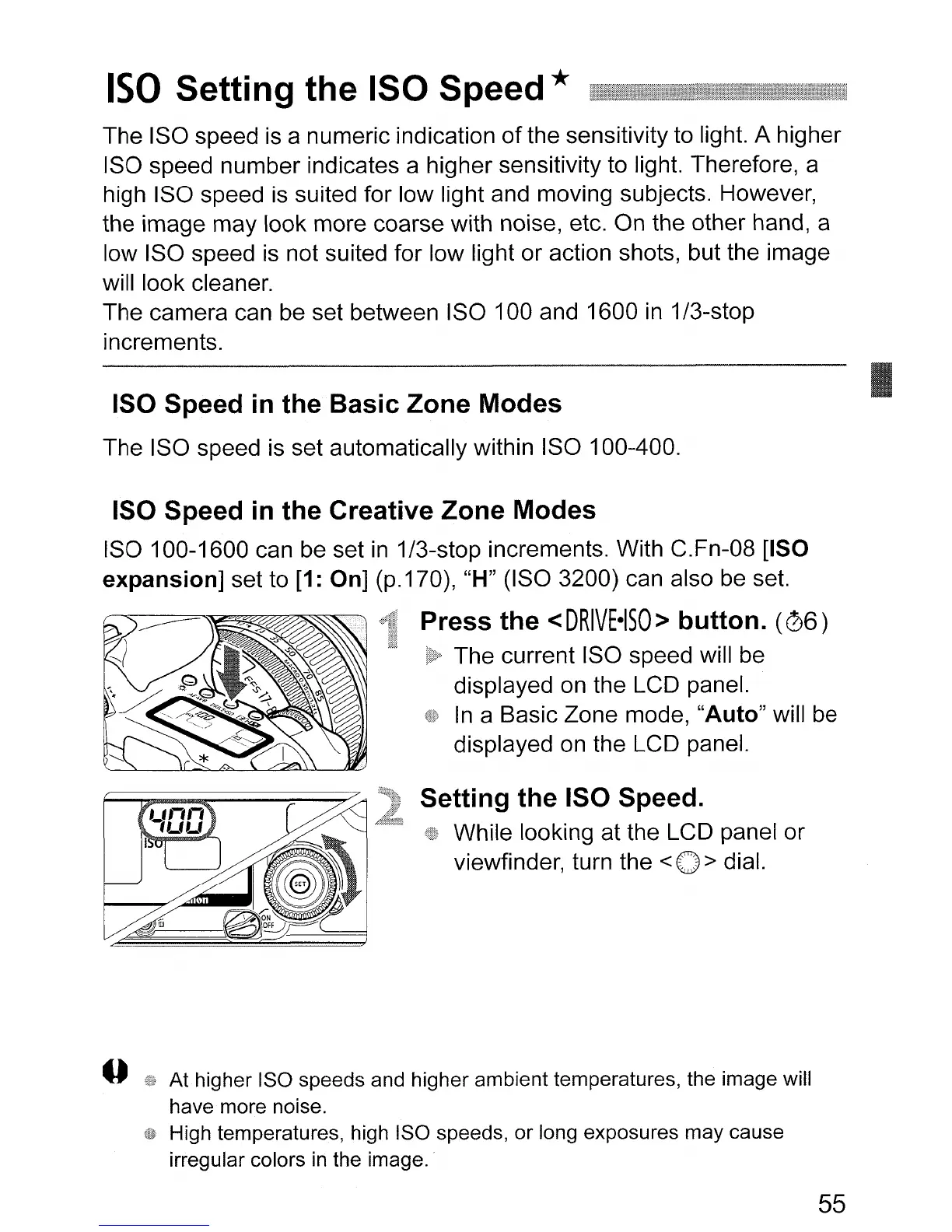 At higher ISO speeds and higher ambient temperatures, the image will