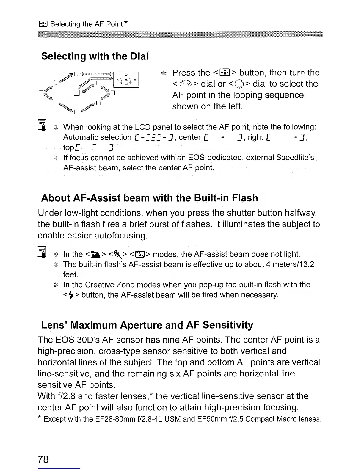 line-sensitive, and the remaining six AF points are horizontal line-