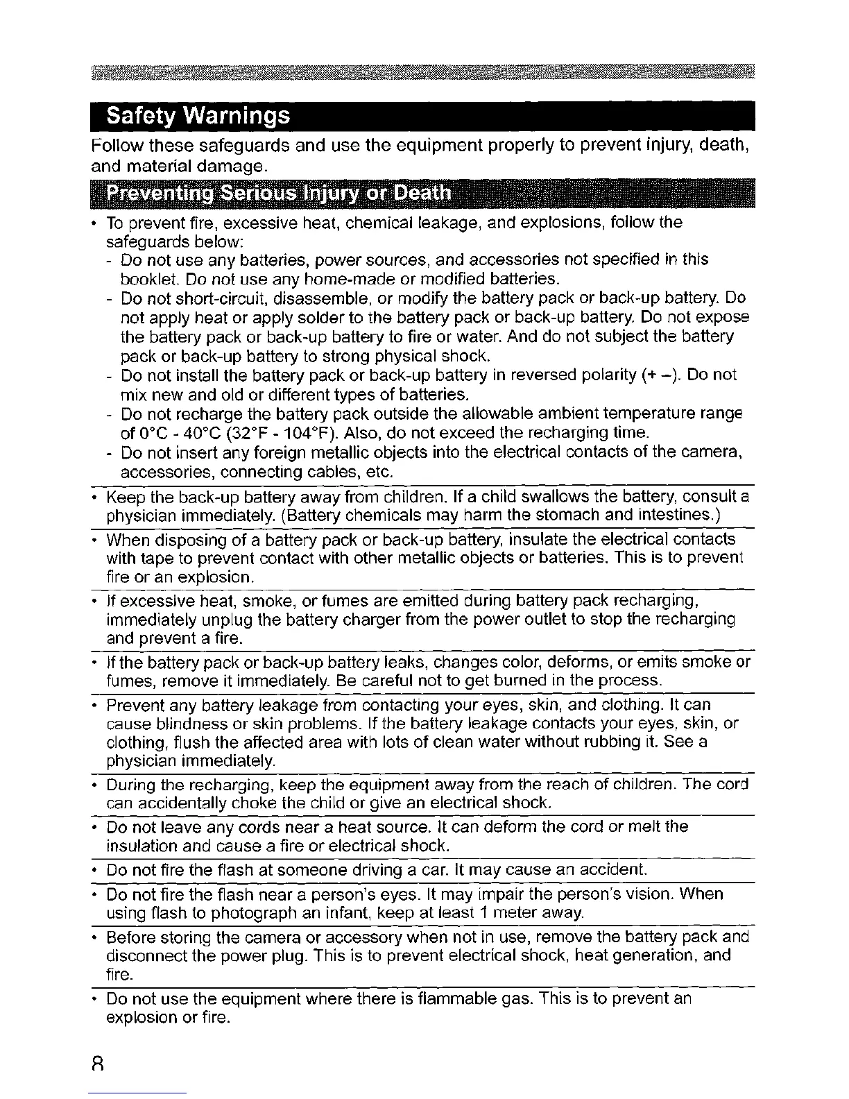 • Do not fire the flash at someone driving a car. It may cause an accident.