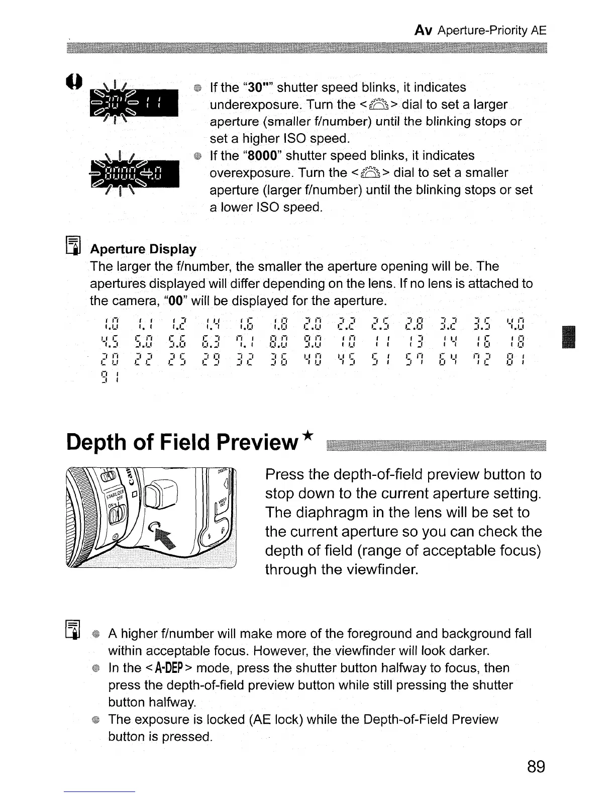The exposure is locked (AE lock) while the Depth-of-Field Preview