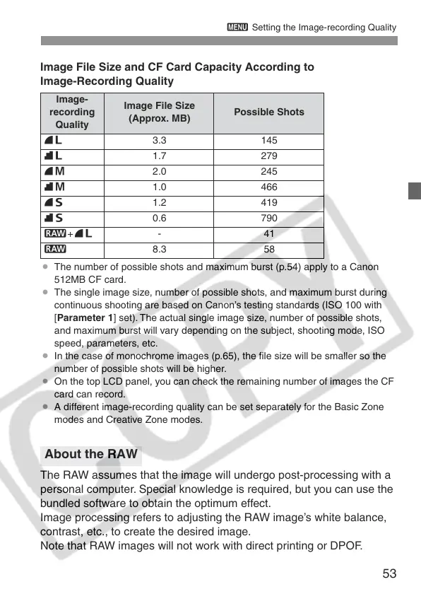 ¡ The number of possible shots and maximum burst (p.54) apply to a Canon