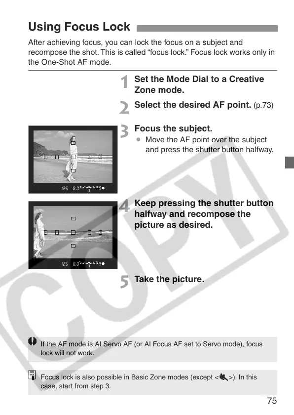 recompose the shot. This is called “focus lock.” Focus lock works only in