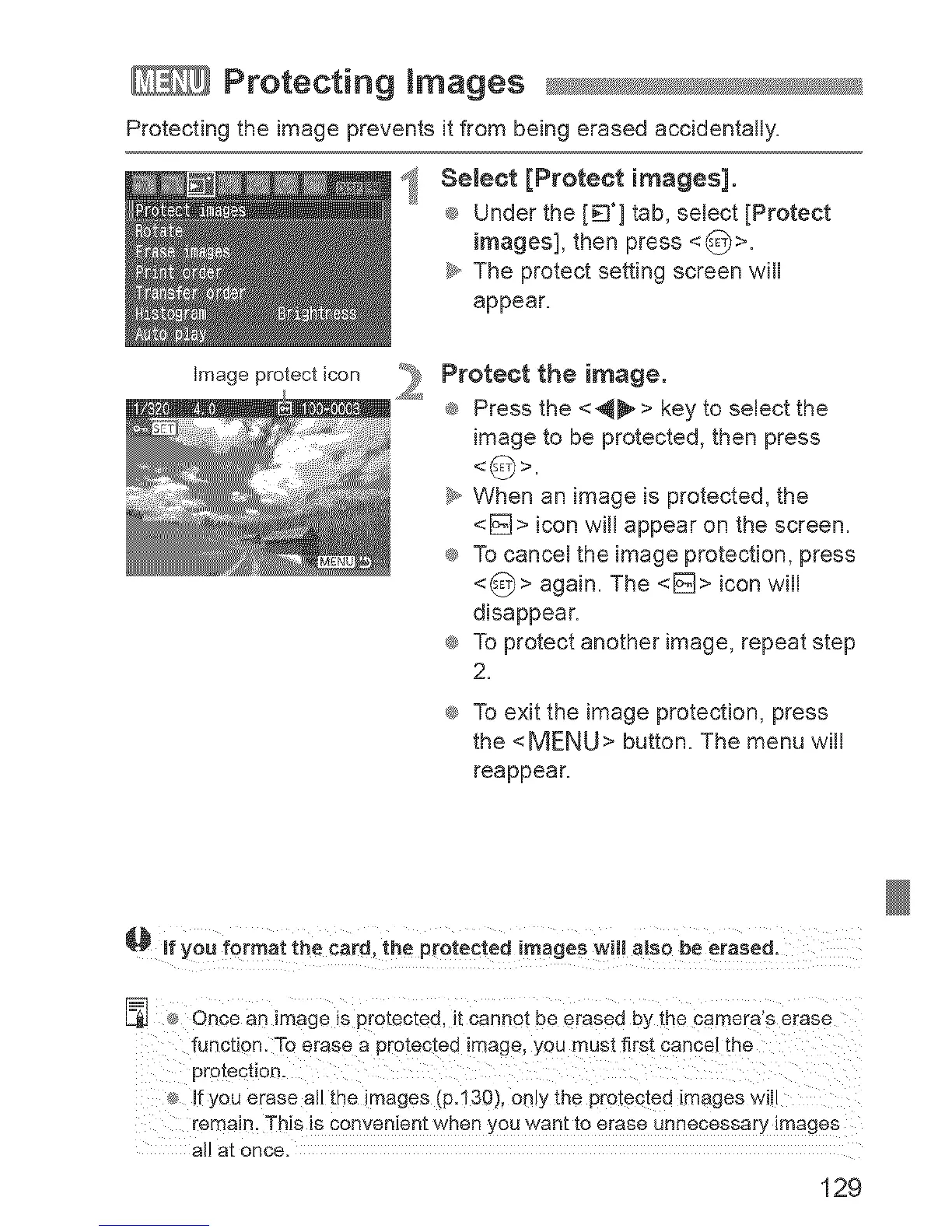 Ifyou erase aHme images (p.130), onlythe protected images will