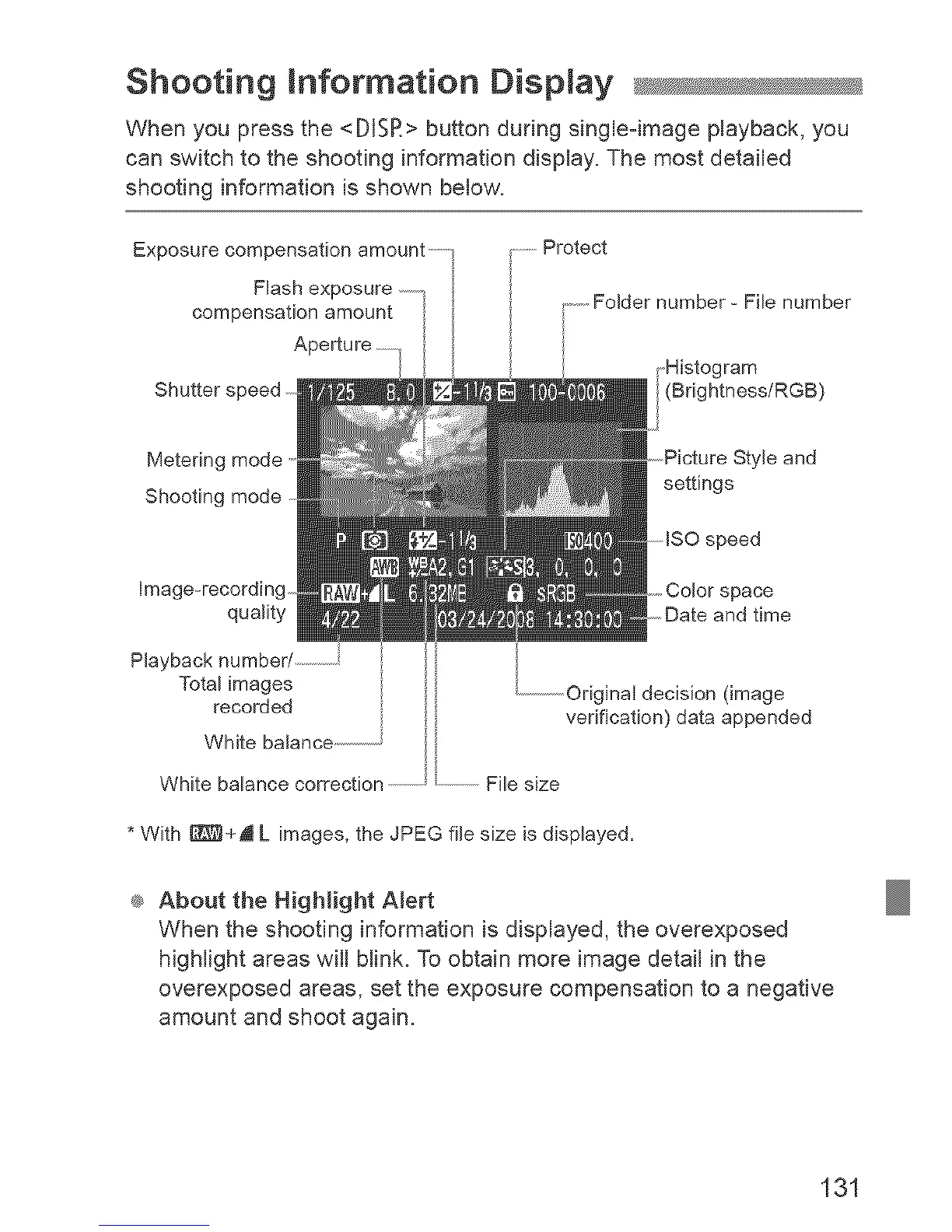 When the shooting information is displayed, the overexposed