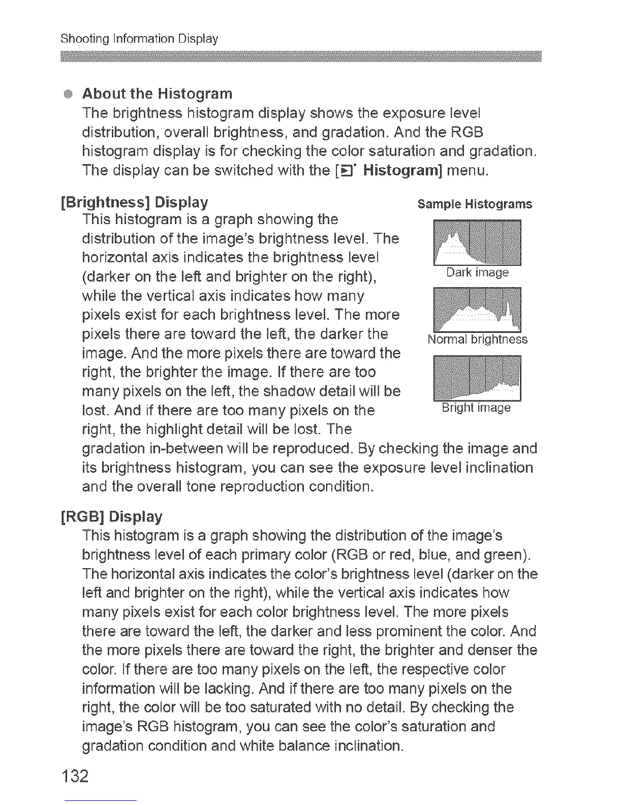 histogram display is for checking the color saturation and gradation.