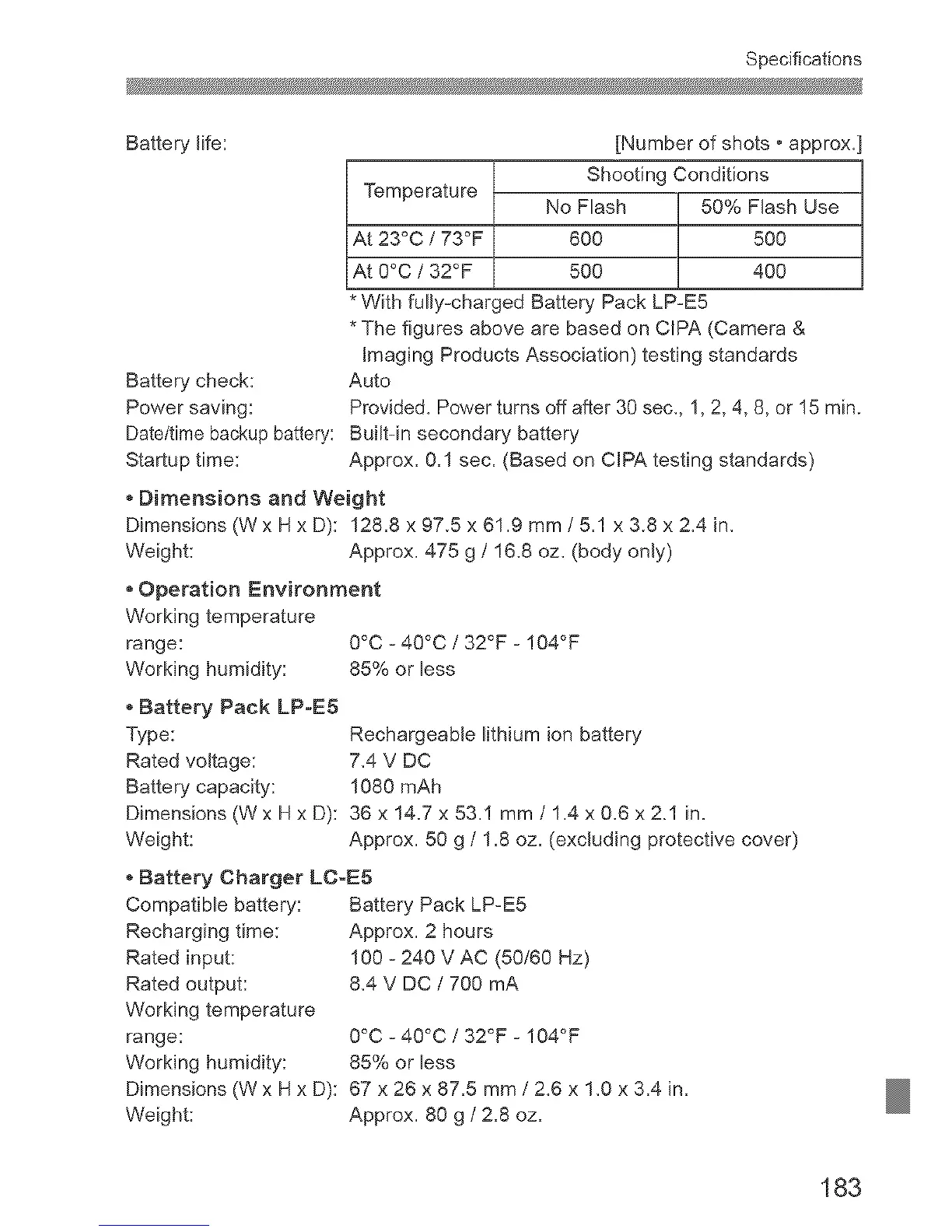 • With fully-charged Battery Pack LP-E5