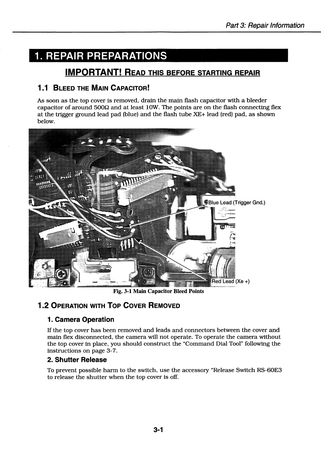Canon EOS 50 E - Part 3 Repair Information; 1. REPAIR PREPARATIONS