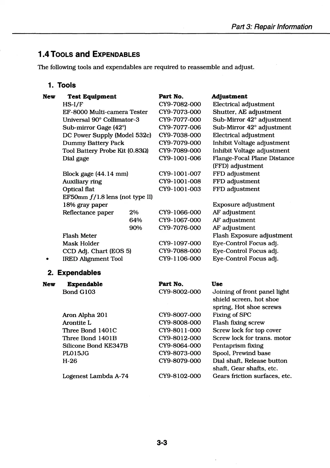 Canon EOS 50 E - 1.4 TOOLS and EXPENDABLES
