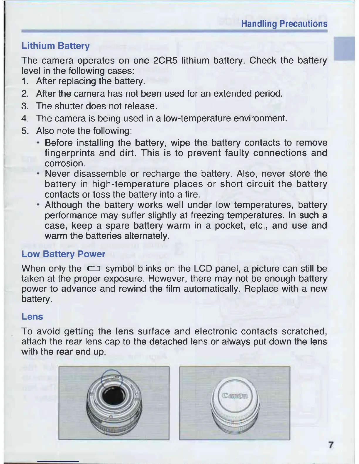 Canon EOS 50 - Lithium Battery Operation and Service Life
