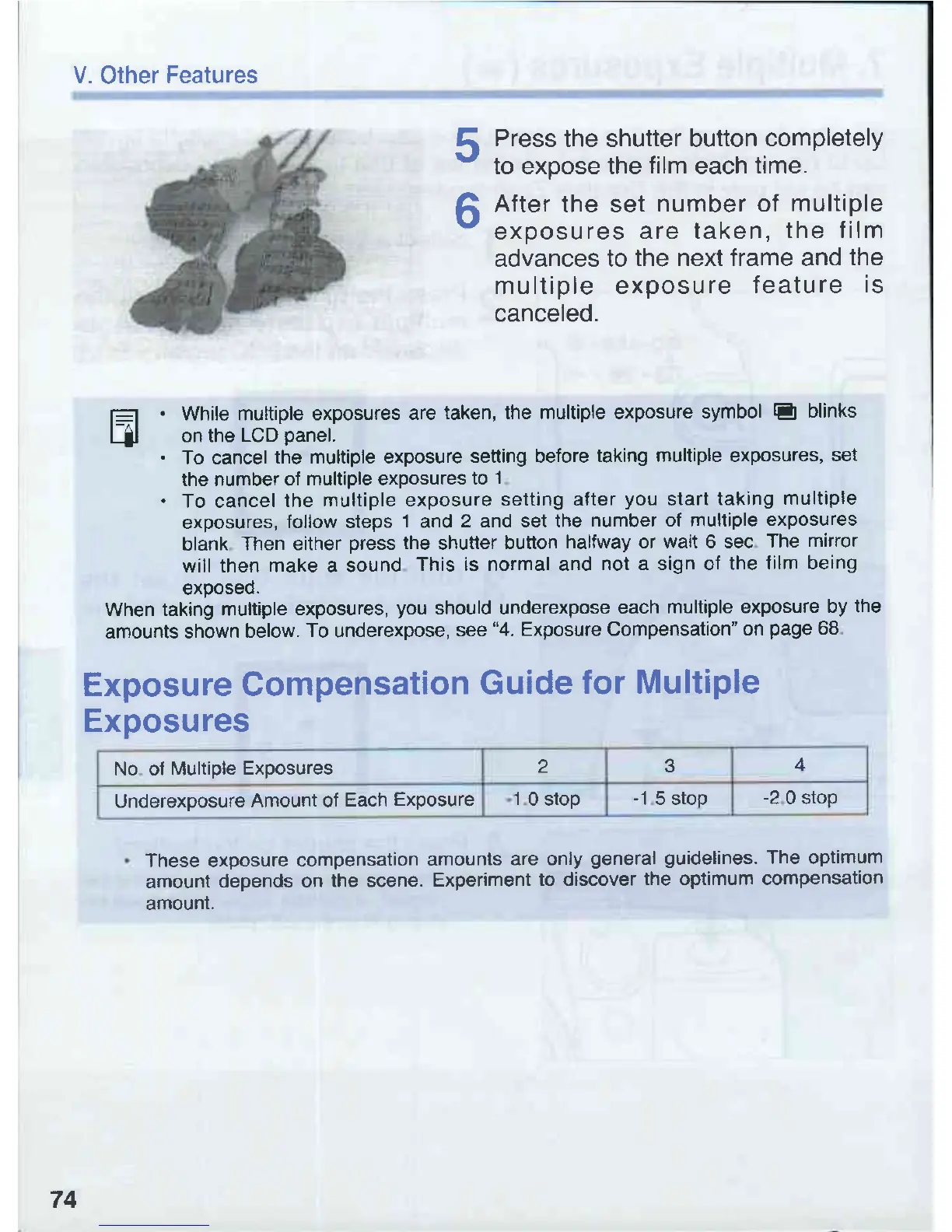 Canon EOS 50 - Exposure Compensation Guide for Multiple Exposures