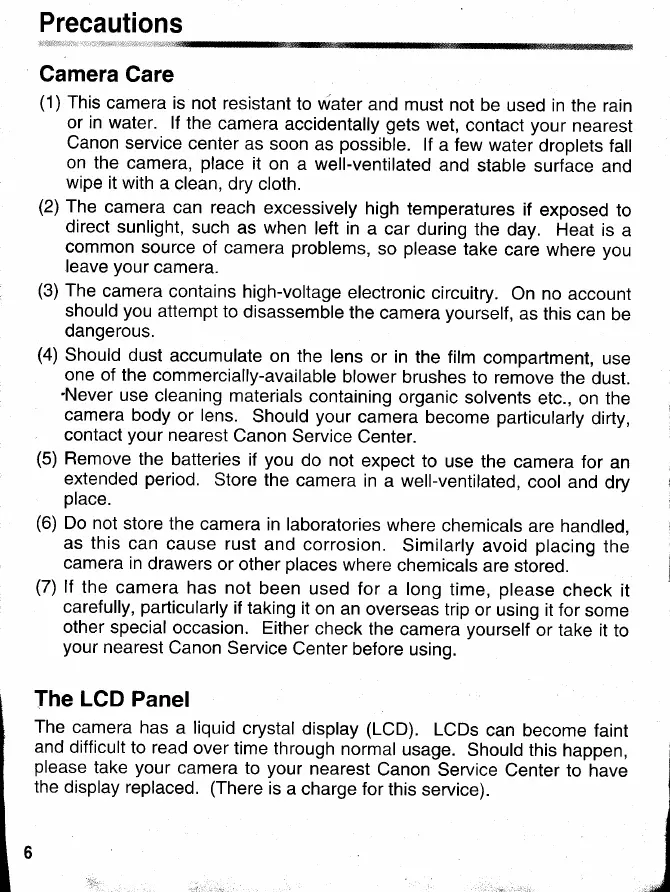 Canon EOS 5000 - Precautions; Troubleshooting Common Issues