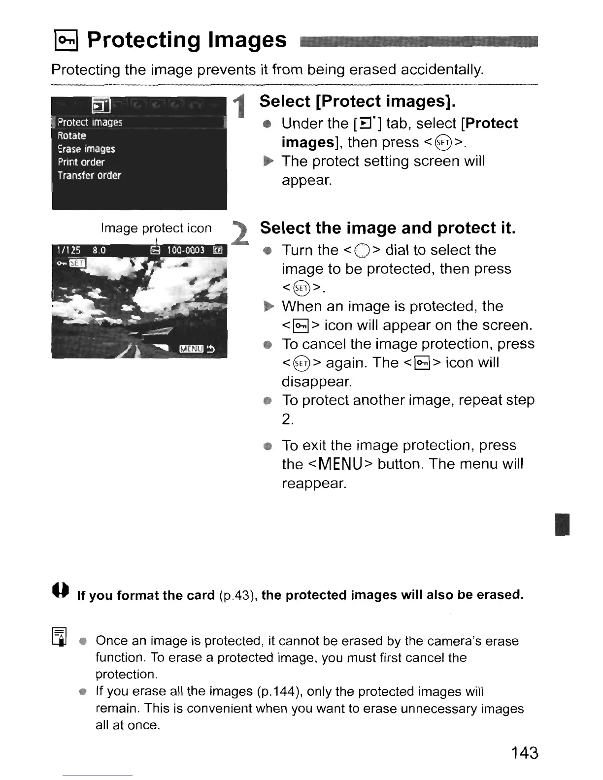 [i] • Once an image is protected, it cannot be erased by the camera's erase