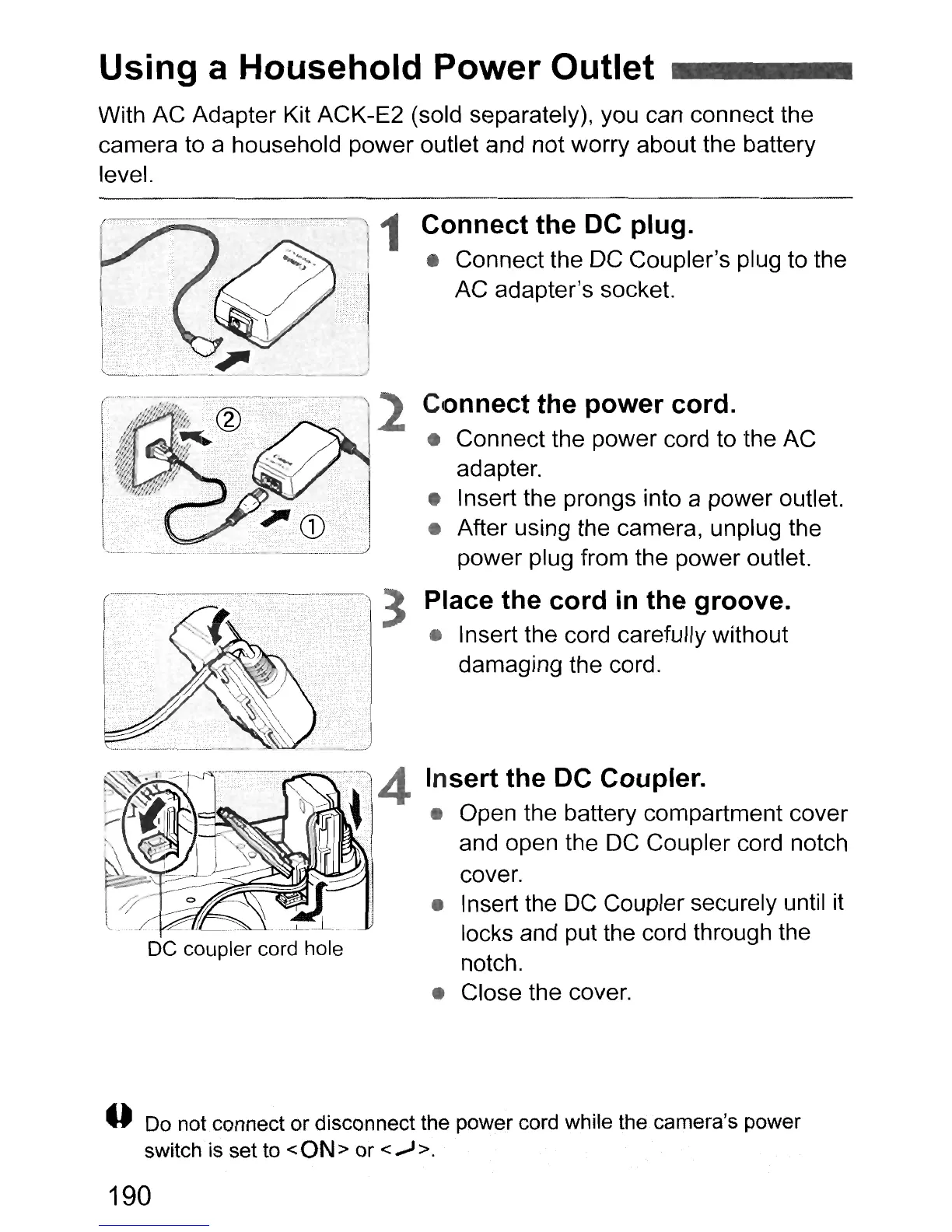 With AC Adapter Kit ACK-E2 (sold separately), you can connect the