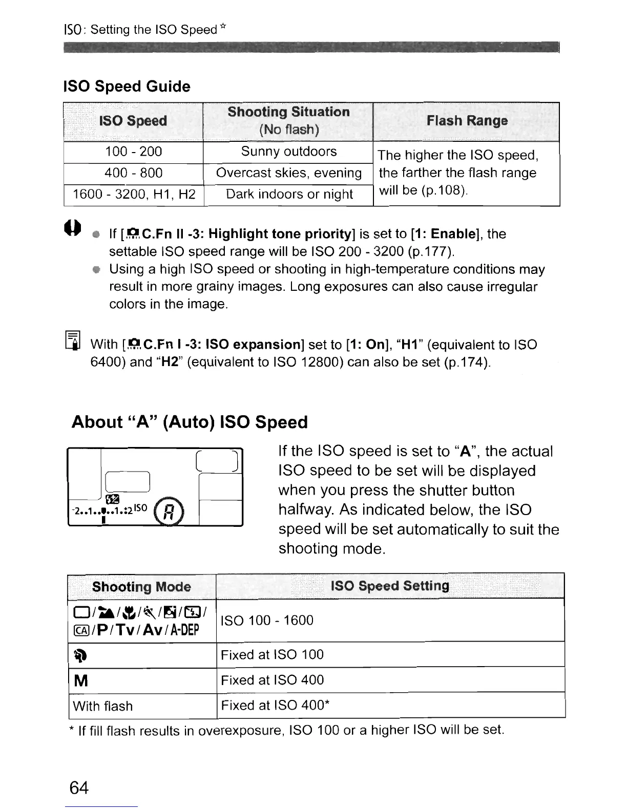 6400) and "H2" (equivalent to ISO 12800) can also be set (p.174).