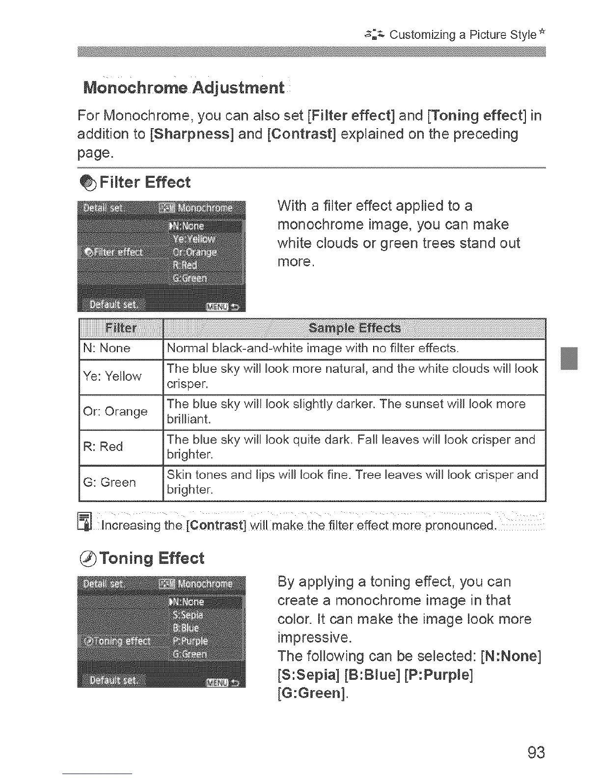 For Monochrome, you can also set [Filter effect] and [Toning effect] in