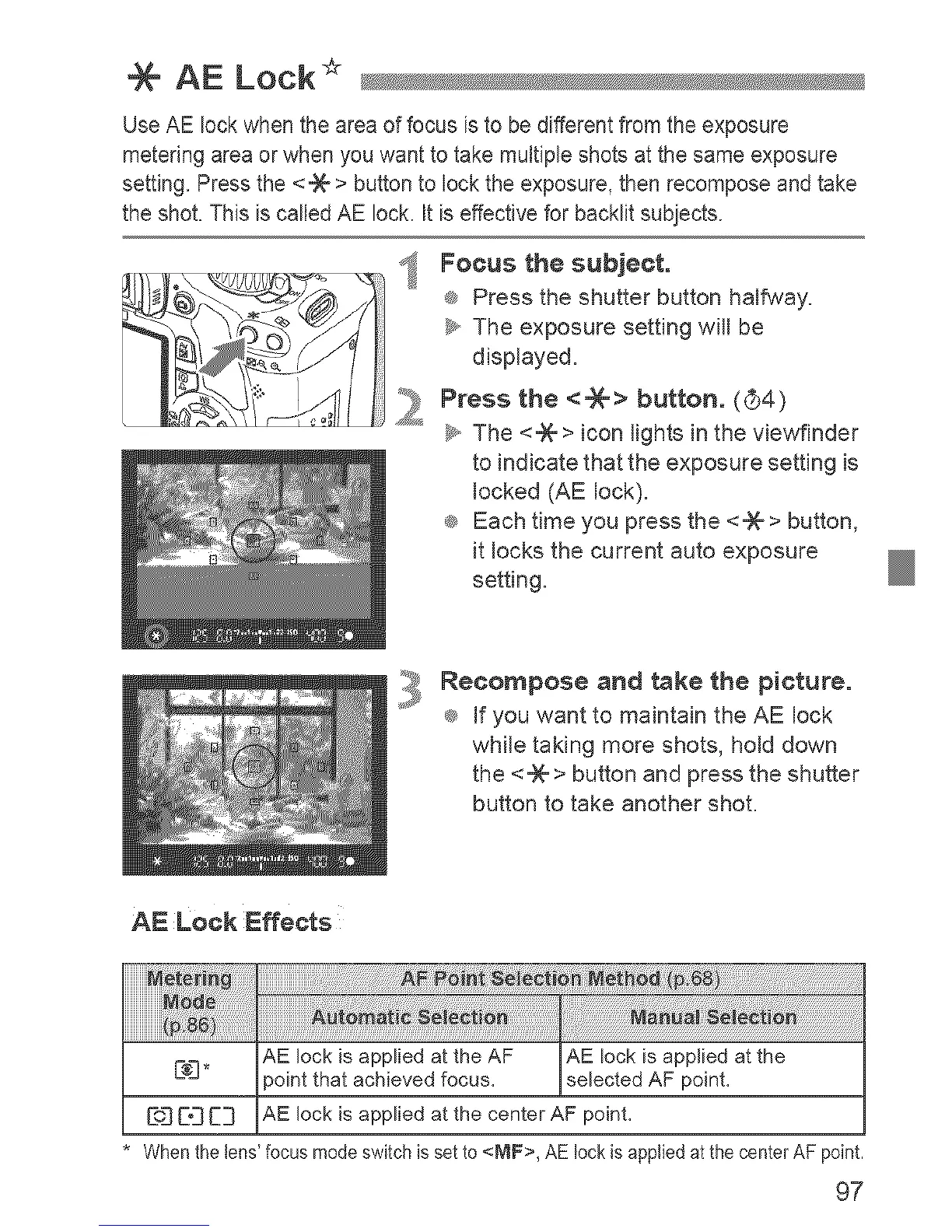 setting. Pressthe <%> button to lock the exposure, then recompose and take