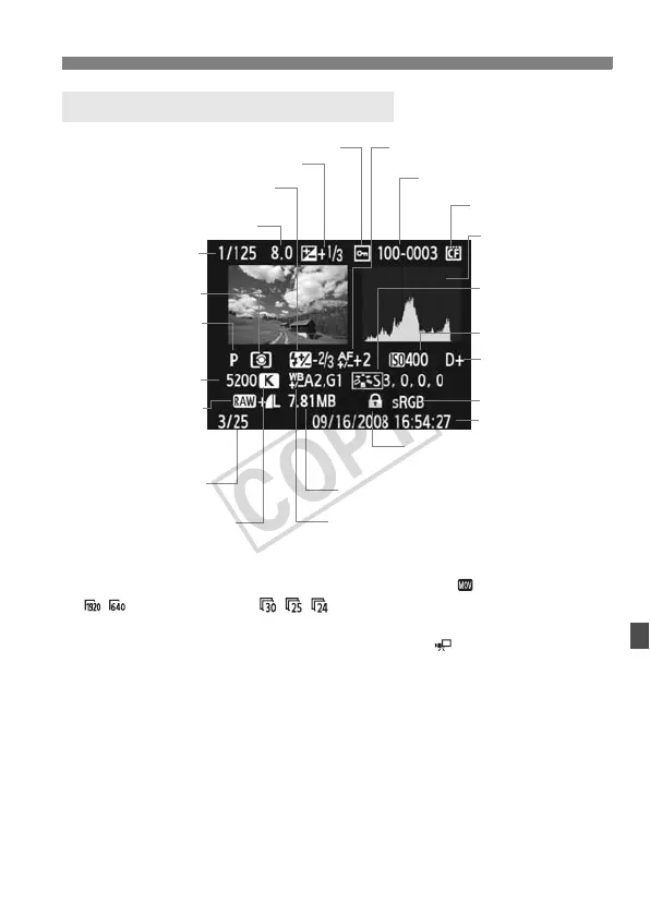 * For movie files, the movie icon <k>, recording format < >, recording size