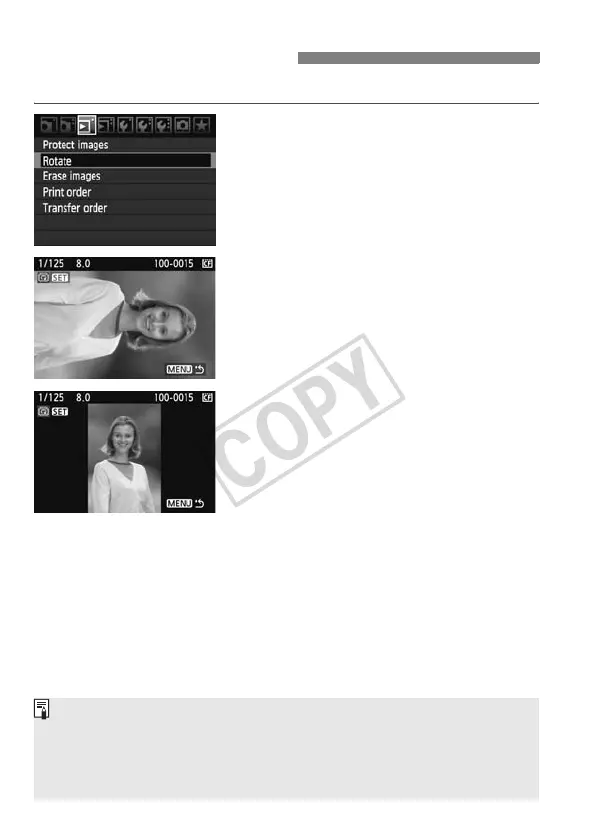 If you have set [5 Auto rotate] to [OnzD] (p.164) before taking