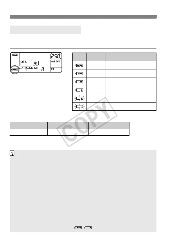 When the power switch is set to <1> or <J>, the battery level will be