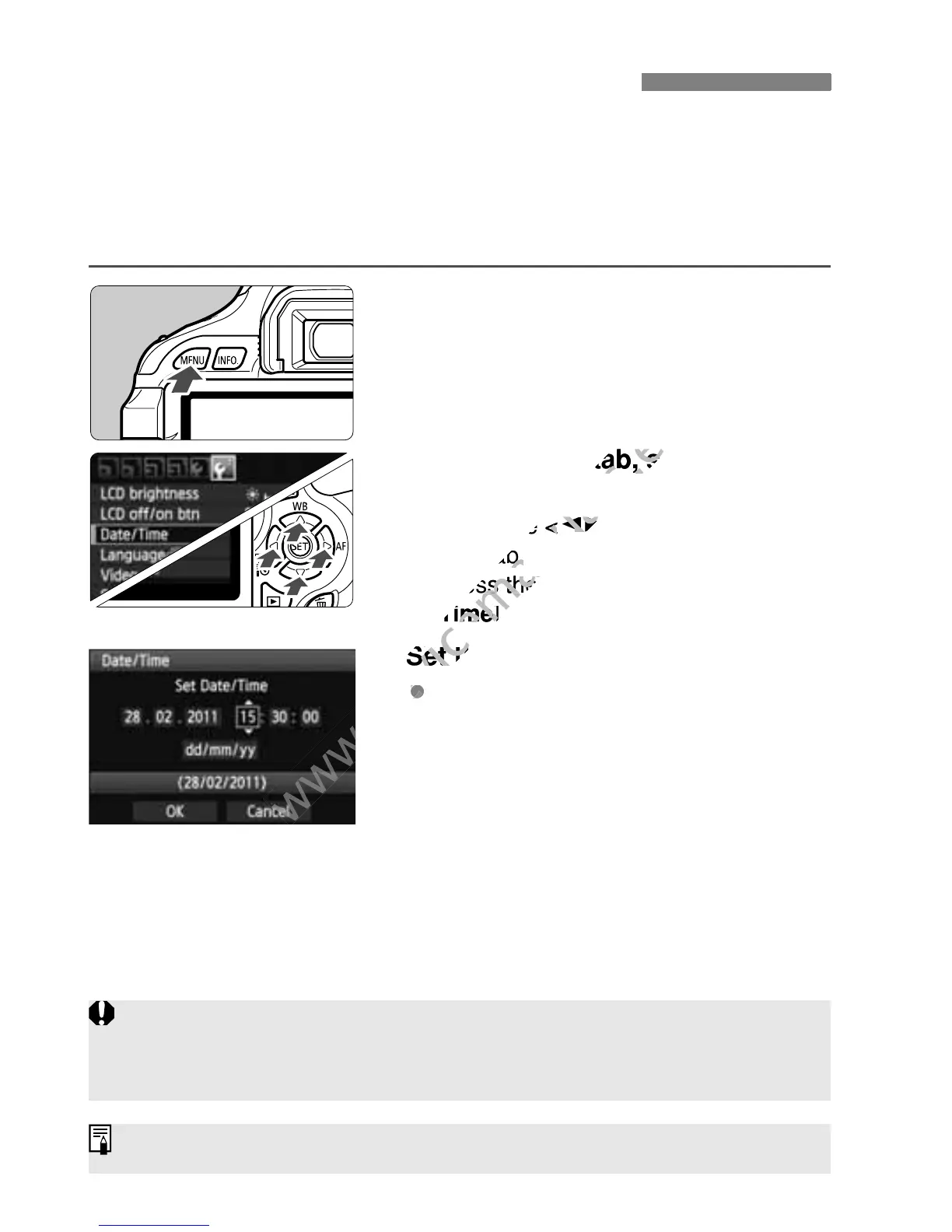 becomes exhausted, the date/time might be reset. If this happens, set the