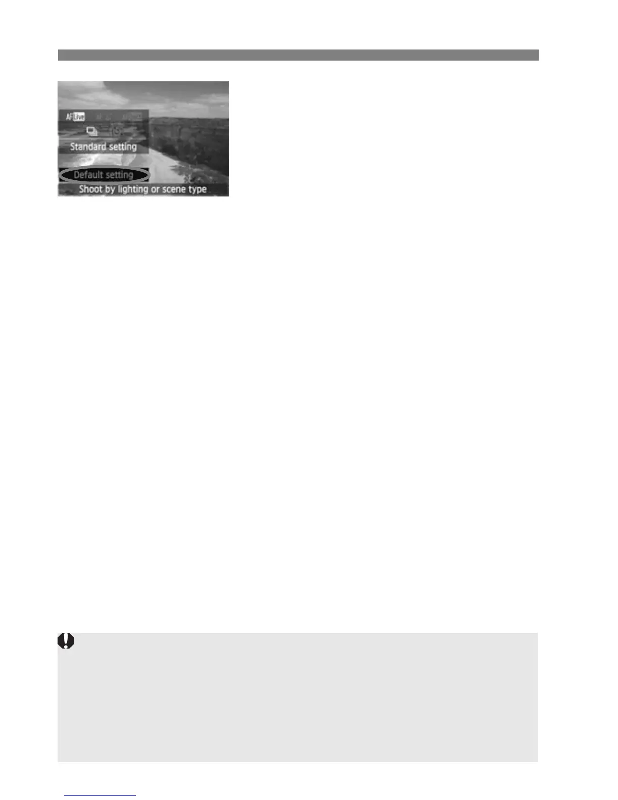 [Default setting]. [Shoot by lighting