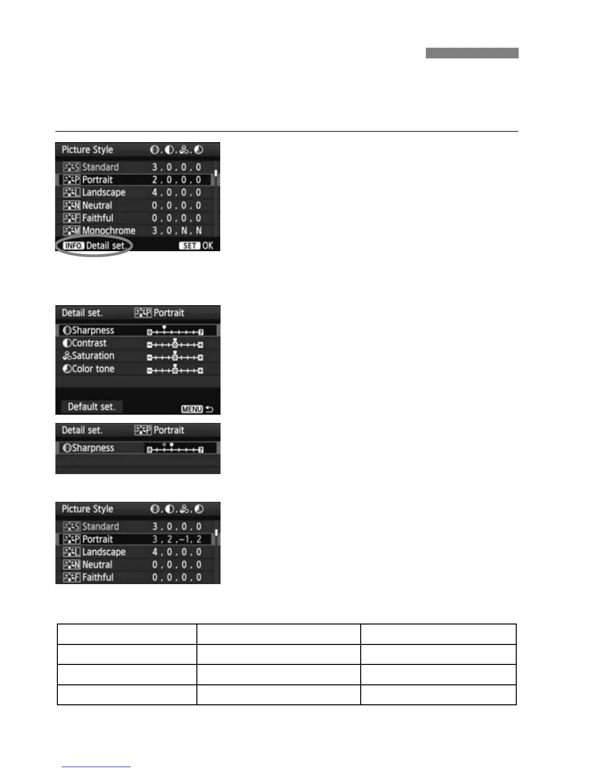 like [Sharpness] and [Contrast]. To see the resulting effects, take test