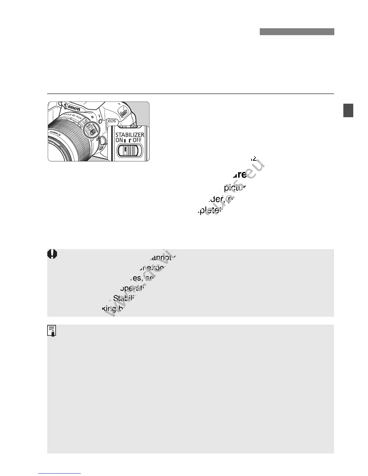 The Image Stabilizer can operate with the lens focus mode switch set to