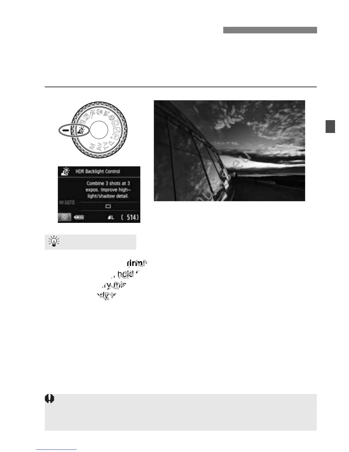 <G> (HDR Backlight Control) mode. When you take a picture, three