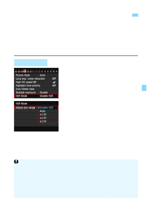 You cannot select RAW and RAW+JPEG. The HDR mode cannot be set