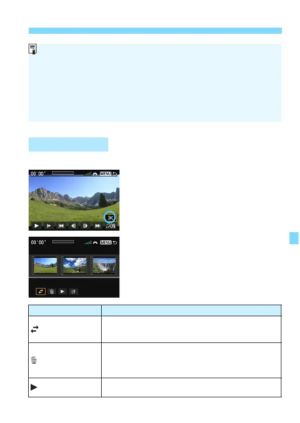 After shooting, you can rearrange, delete, or play back the video snapshots in the album.