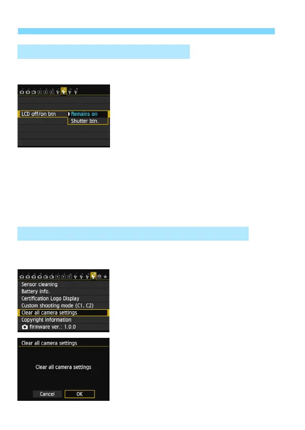 The shooting settings display (p.48) can be set to remain on even when