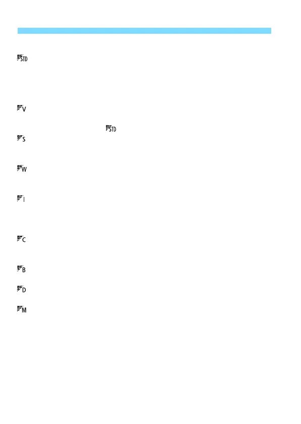 Standard image characteristics for the respective shooting mode.