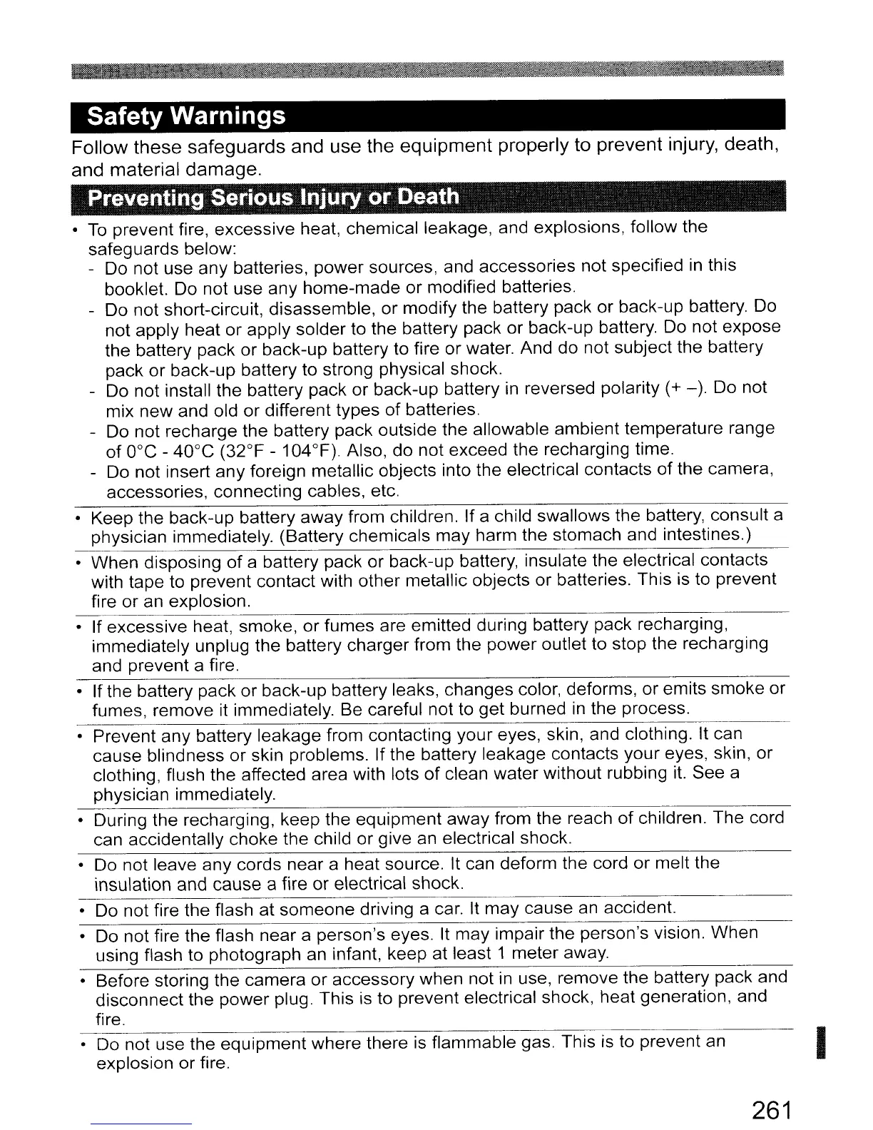 the battery pack or back-up battery to fire or water. And do not subject the battery