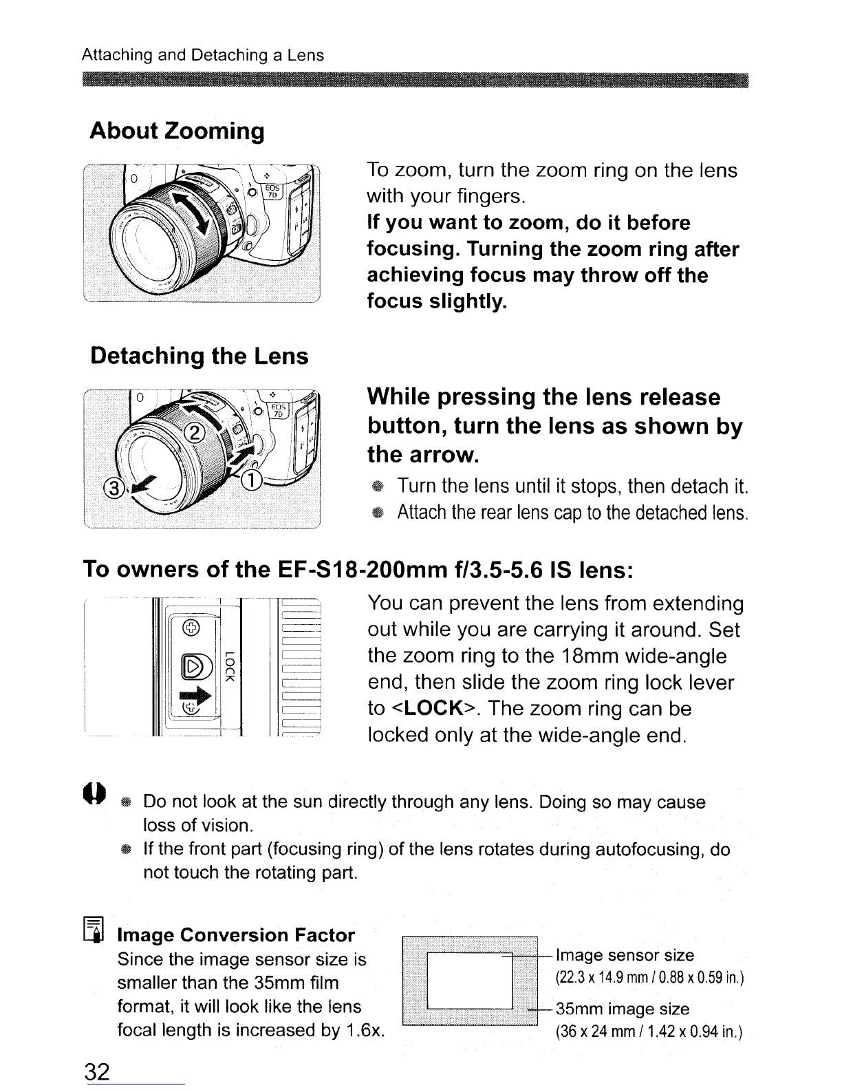 o $ Do not look at the sun directly through any lens. Doing so may cause