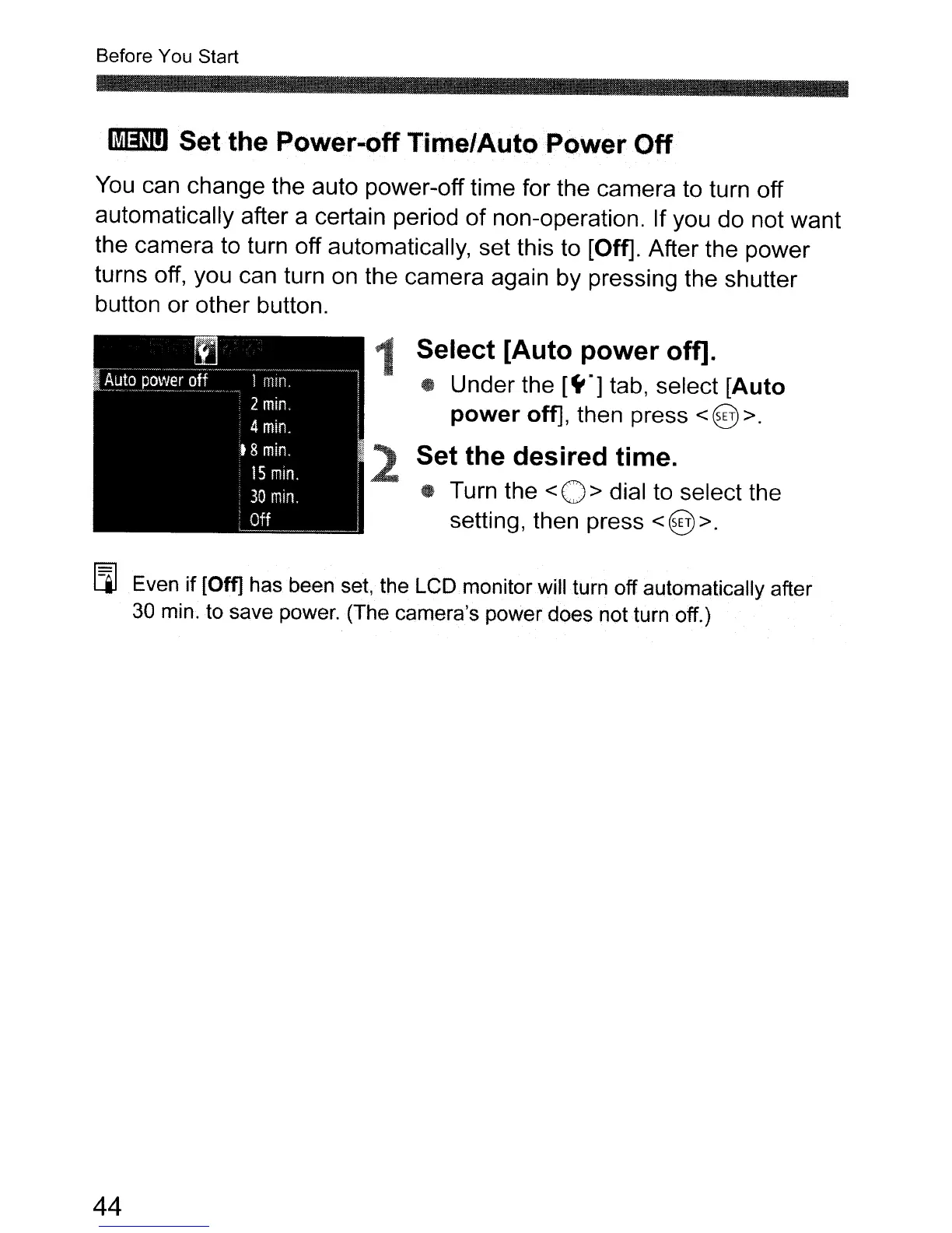Even if [Off] has been set, the LCD monitor will turn off automatically after