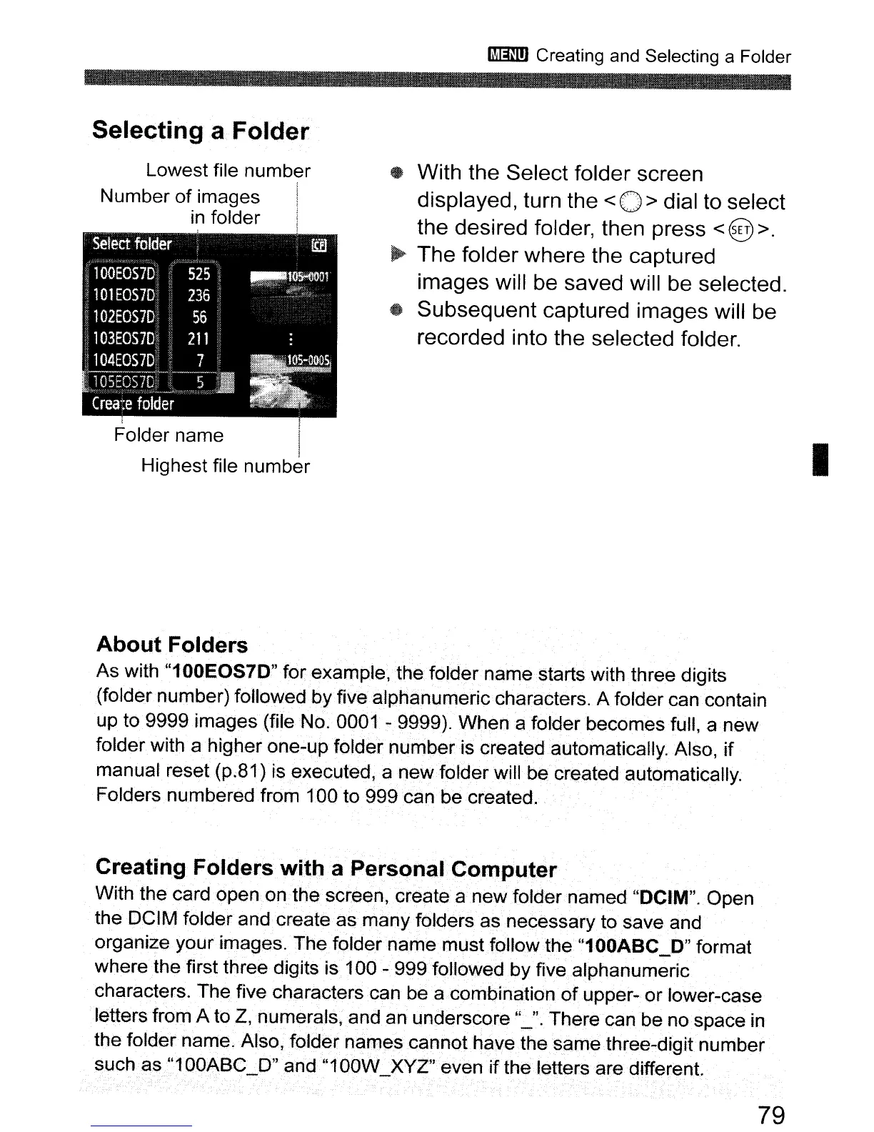 up to 9999 images(file No. 0001 - 9999). When a folder becomes full, a new