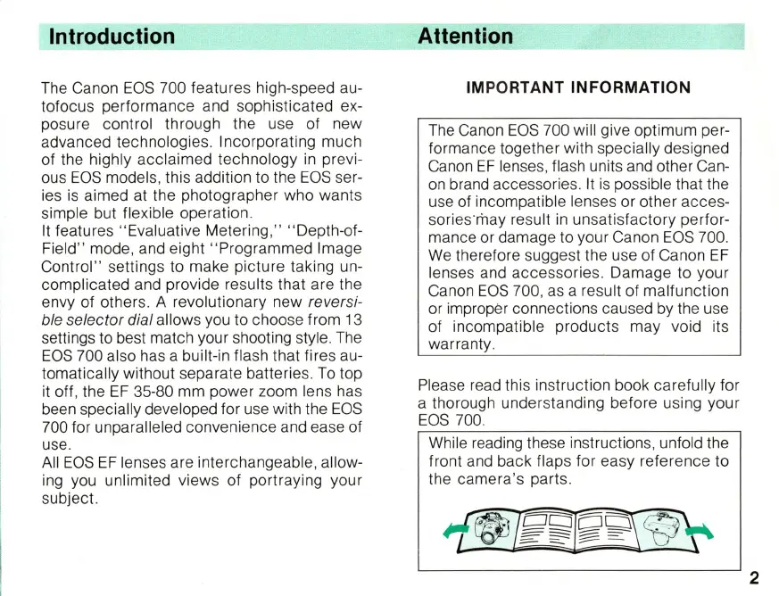 use of incompatible lenses or other acces-