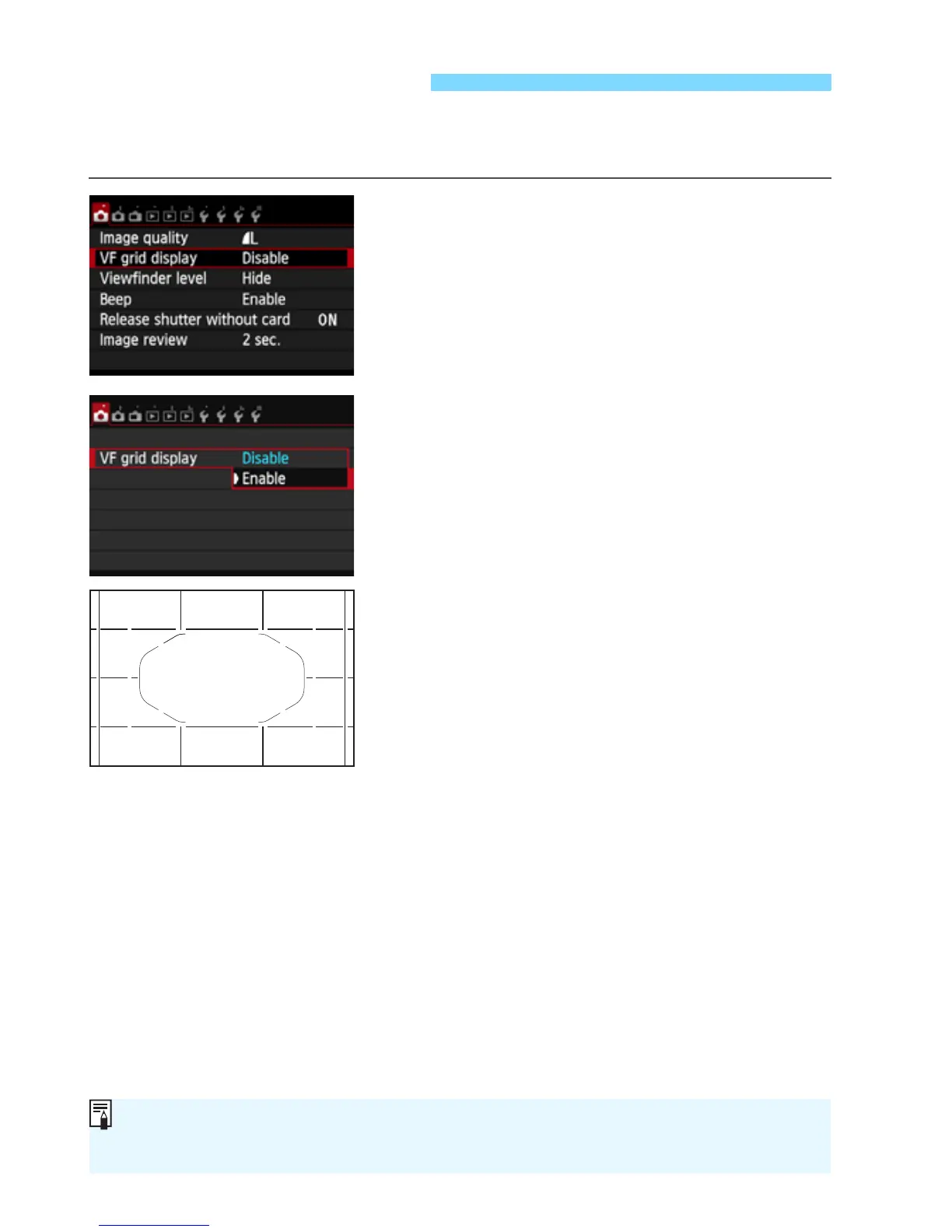 A grid can also be displayed on the LCD monitor during Live View shooting