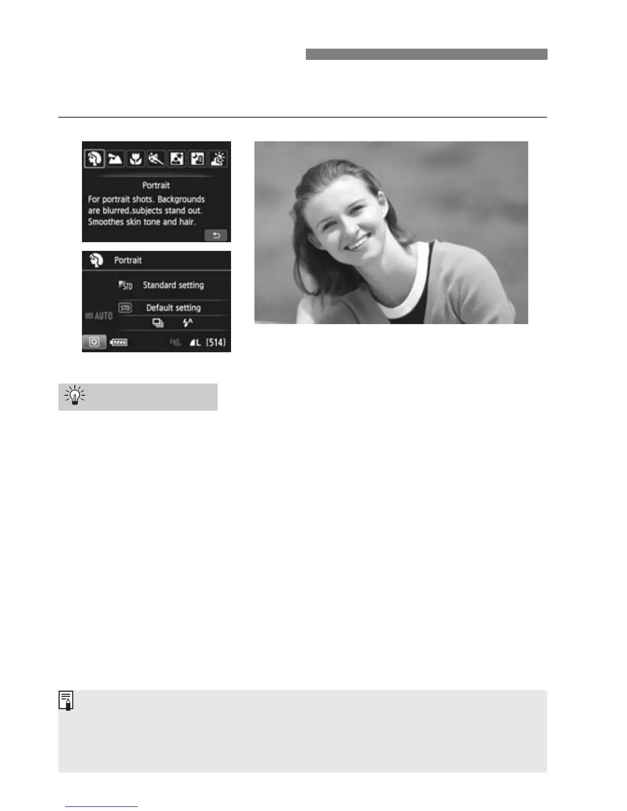 The <2> (Portrait) mode blurs the background to make the human