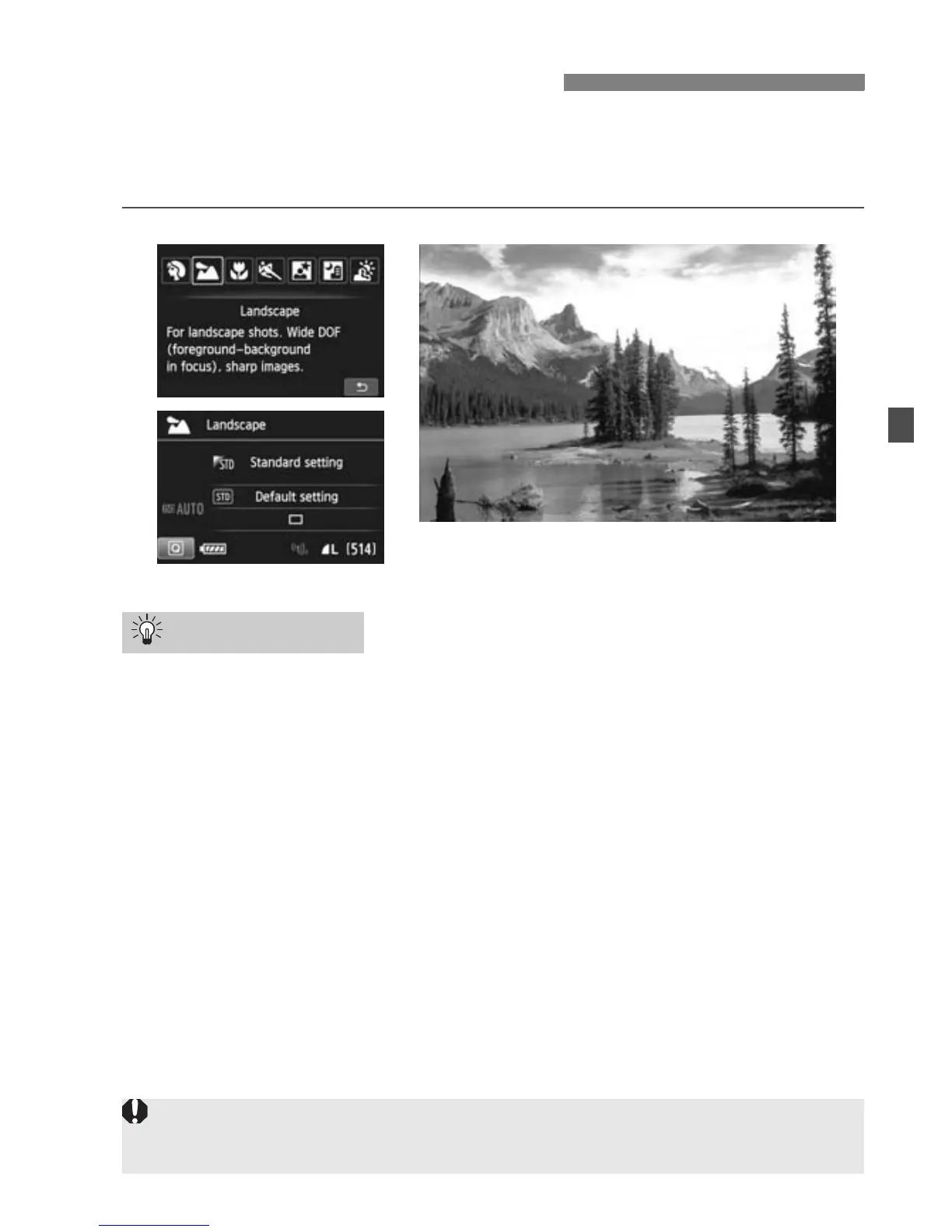 Use the <3> (Landscape) mode for wide scenery or to have