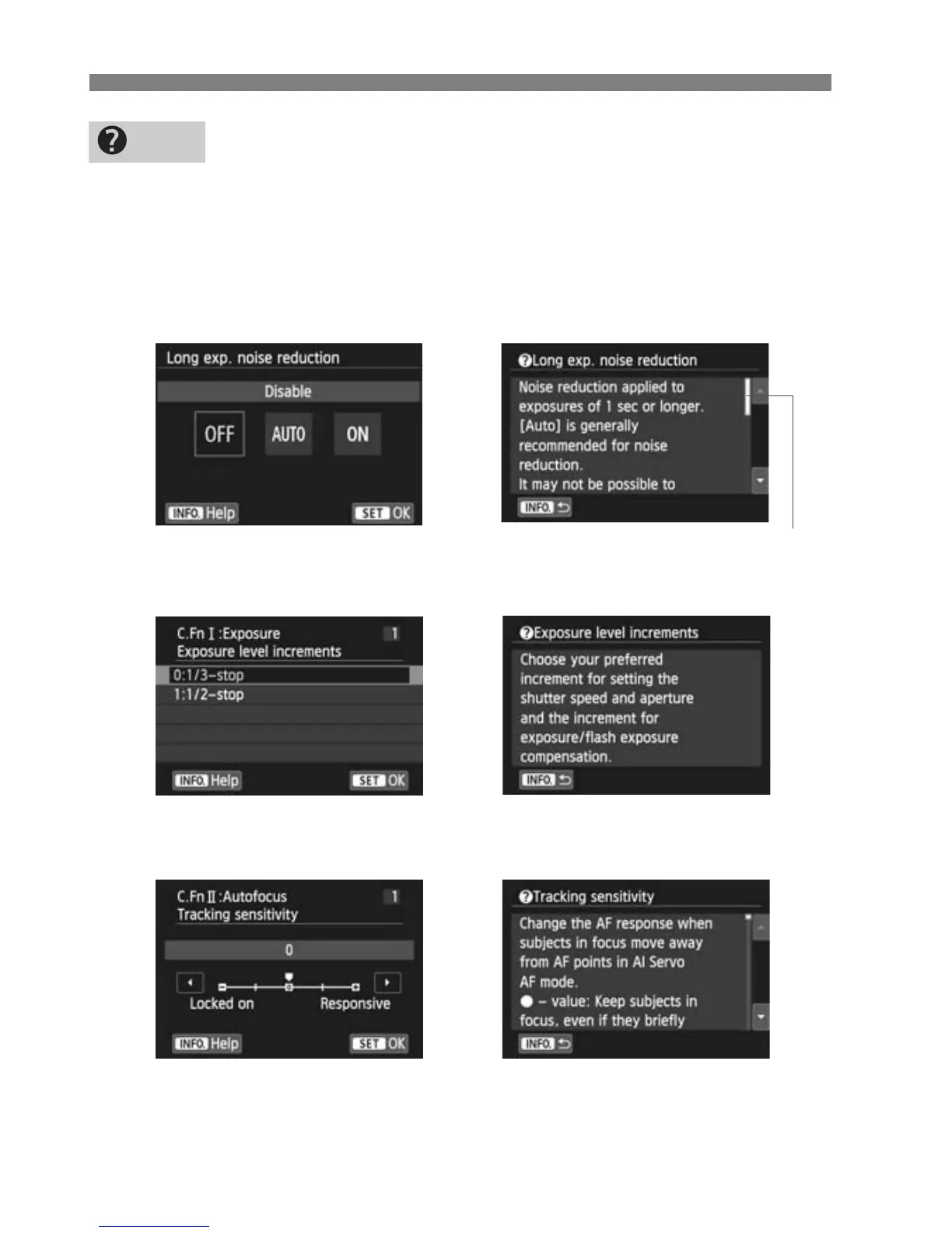 pressing the <B> button displays the function’s description (Help). If
