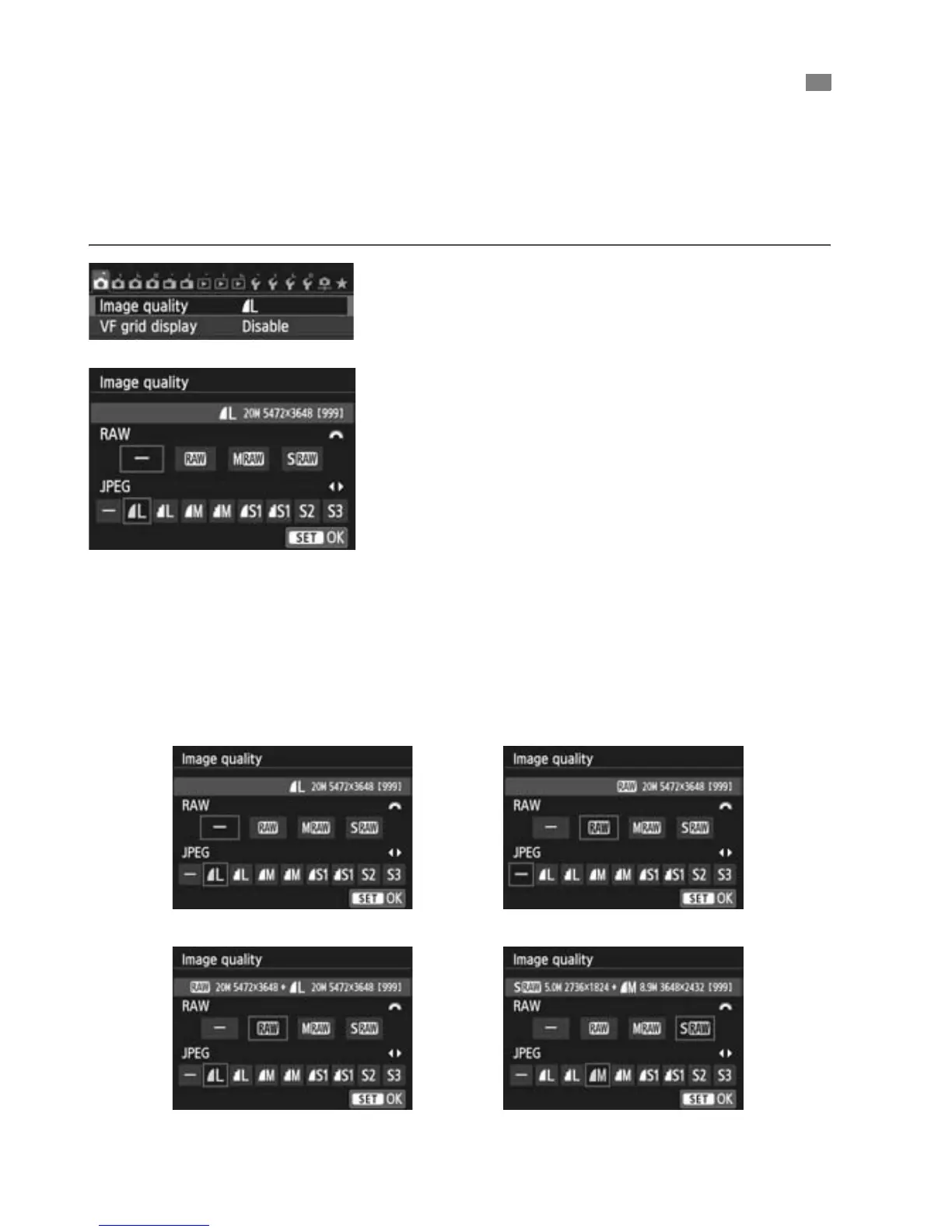 8a, b, c. There are three RAW image quality settings: 1, 41,