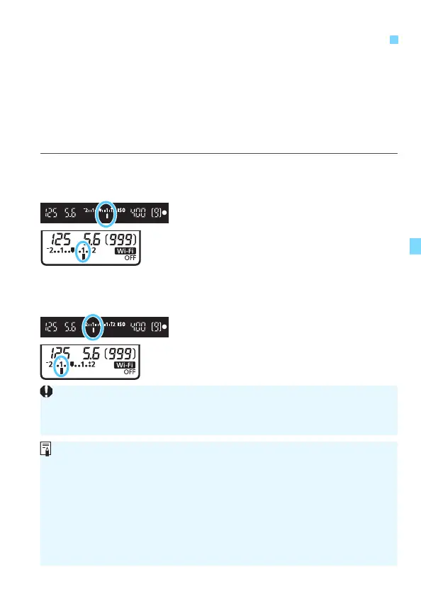 amount exceeds ±2 stops, the end of the exposure level indicator will