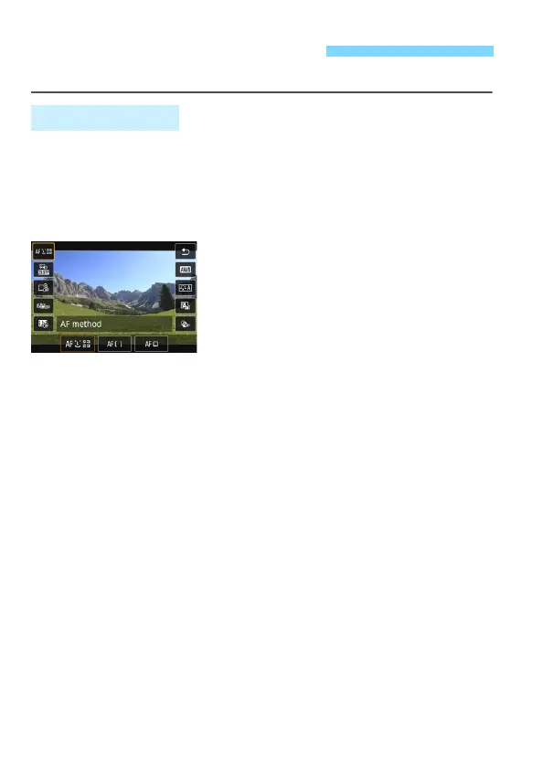 monitor, you can set AF method, Movie rec. size, Digital zoom,