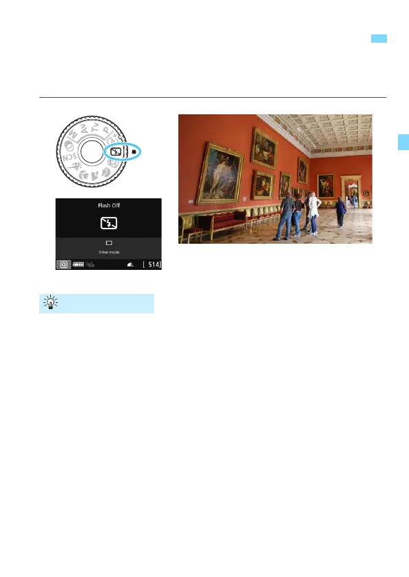 in a museum or an aquarium, use the <7> (Flash Off) mode.