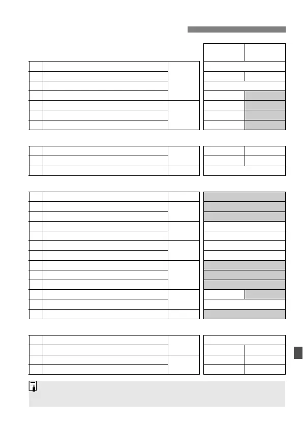 The shaded Custom Functions do not function during Live View (Live View